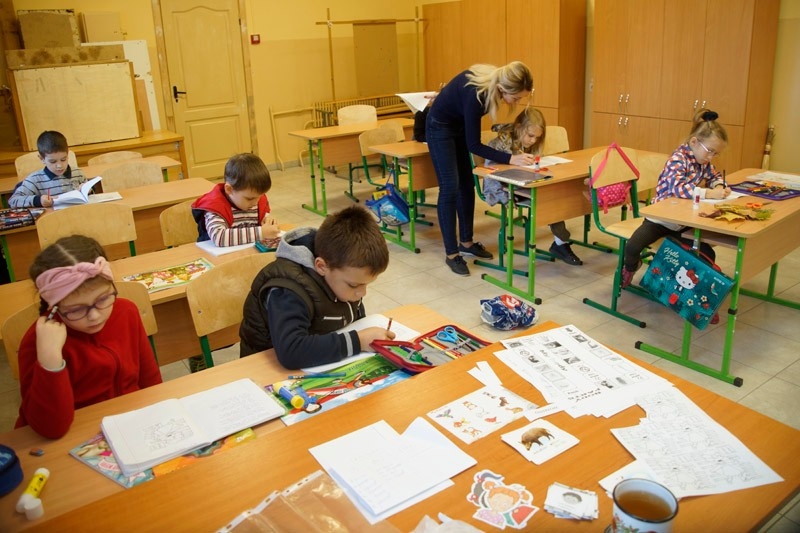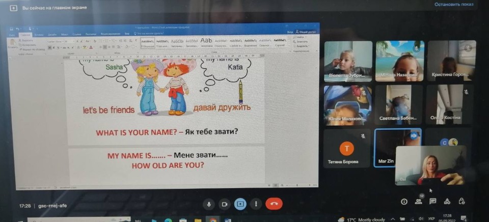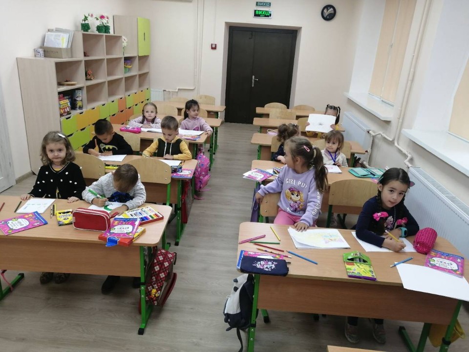 Через деякий час, у міру звикання дітей до обстановки, один до одного і до вчителя, викладач поступово переходить на ведення уроку англійською мовою. Це сприяє зануренню дитини в середовище іноземної мови, розвиває логічне мислення англійською.