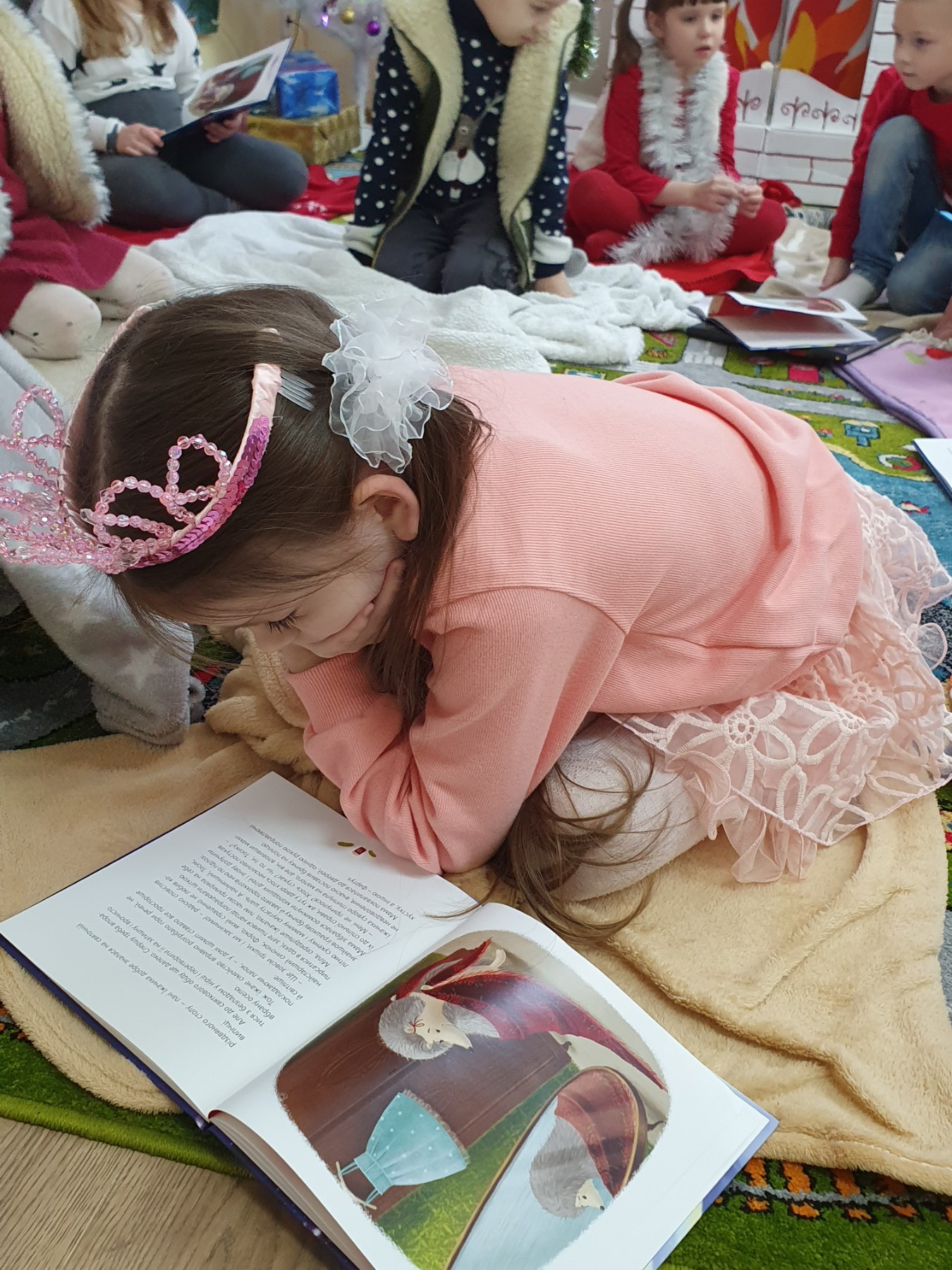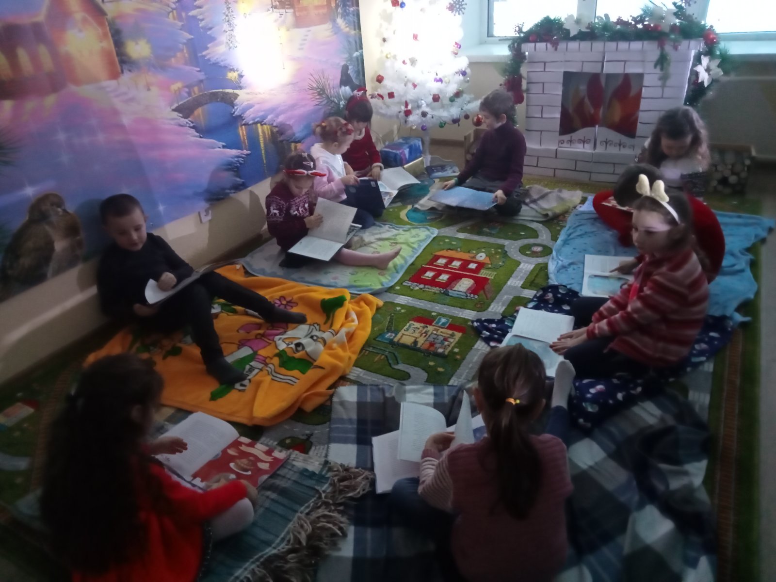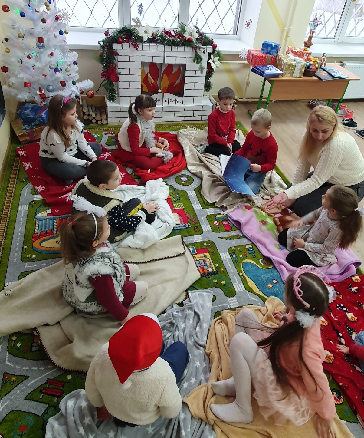 Маленькі вихованці слухали казку про родину їжаків «Одного разу на Різдво». Затишна атмосфера сприяла легкому обговоренню дітьми змісту прослуханого. Вони описували ілюстрації в книзі, відповідали на запитання до тексту, характеризували героїв казки.