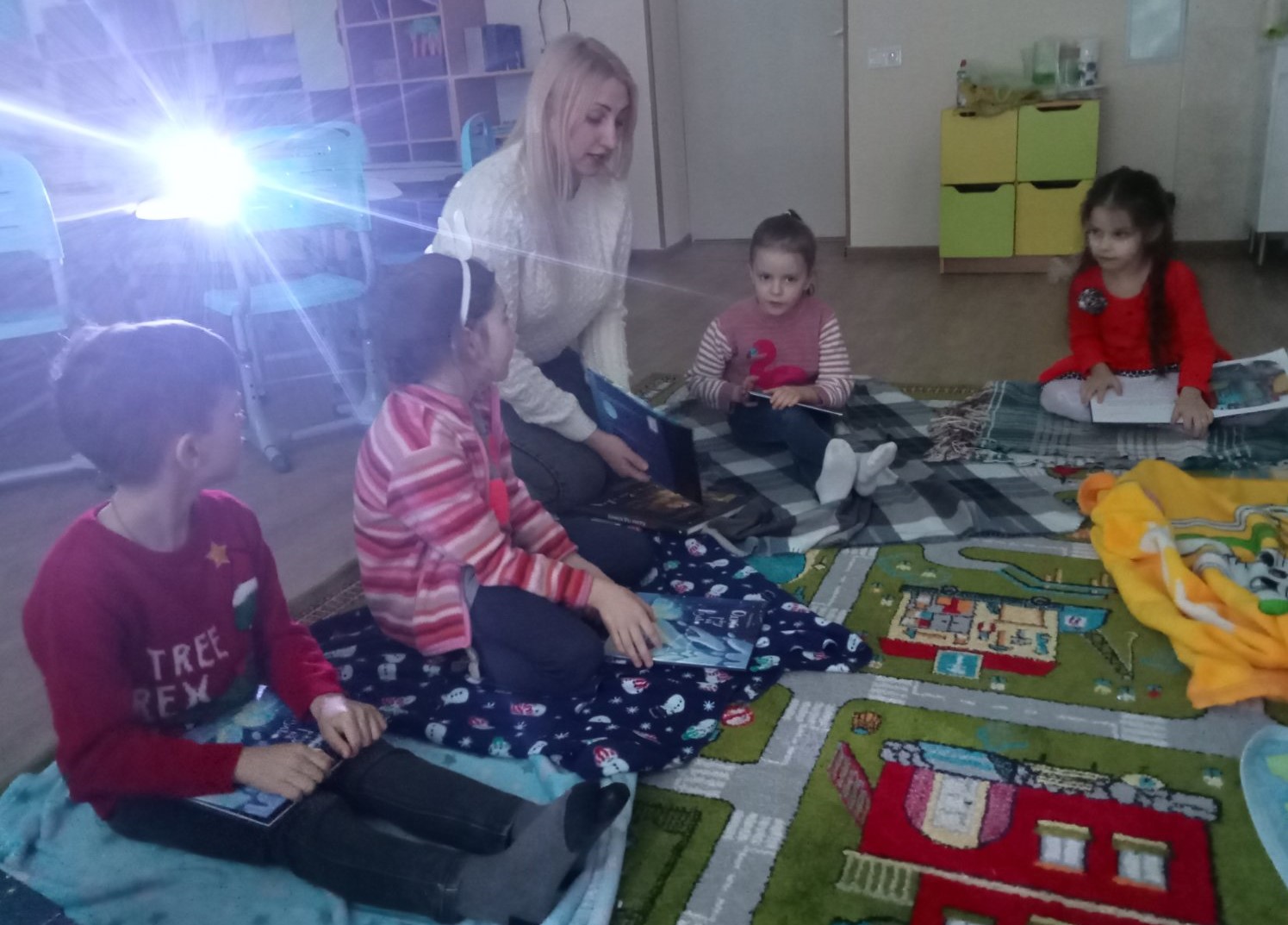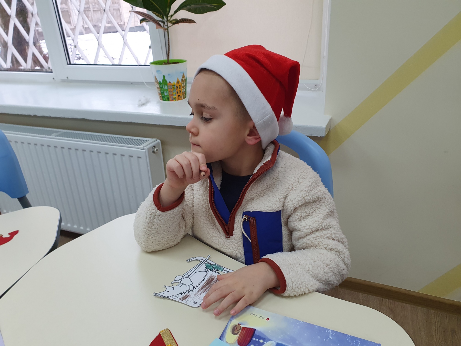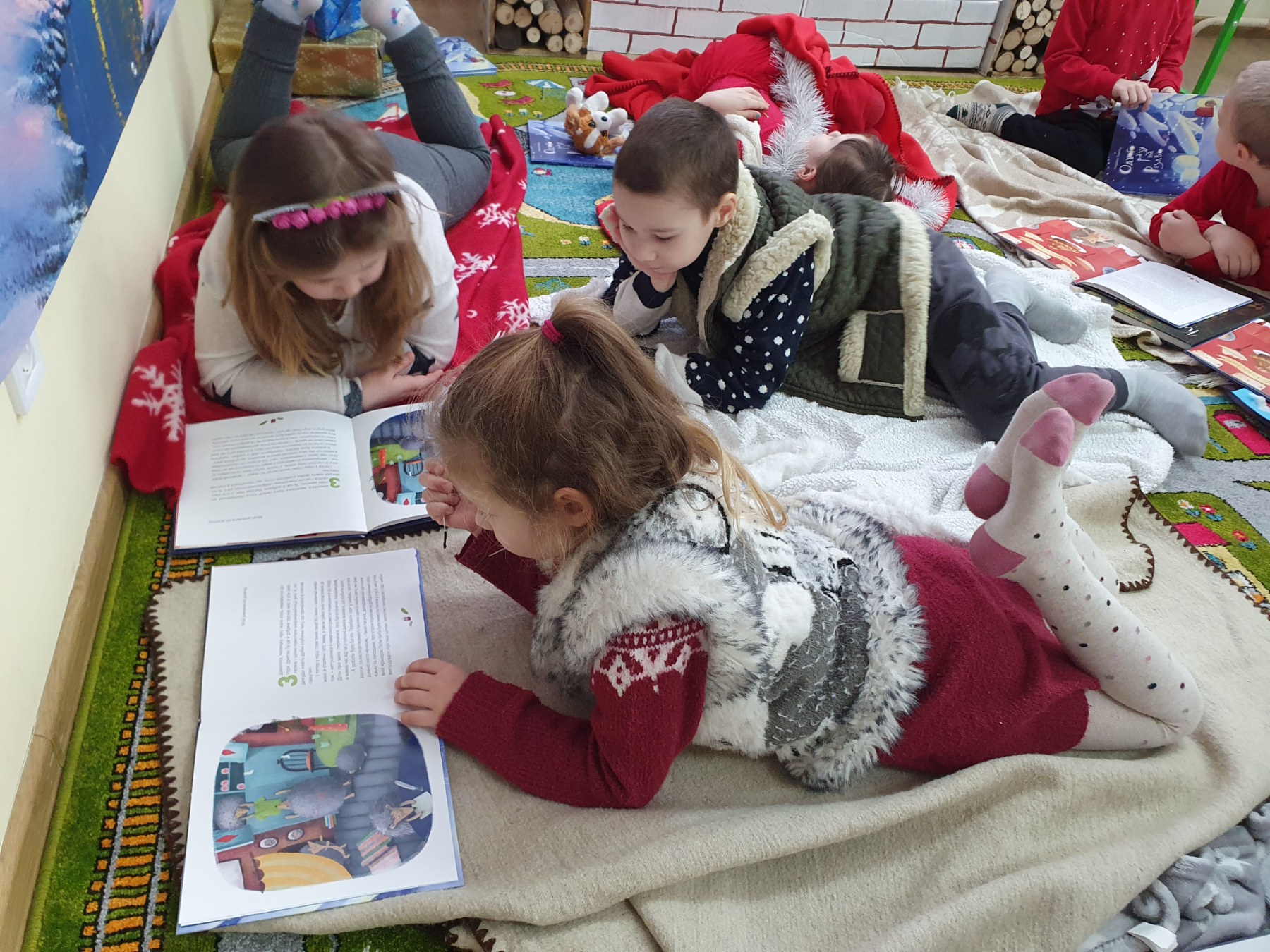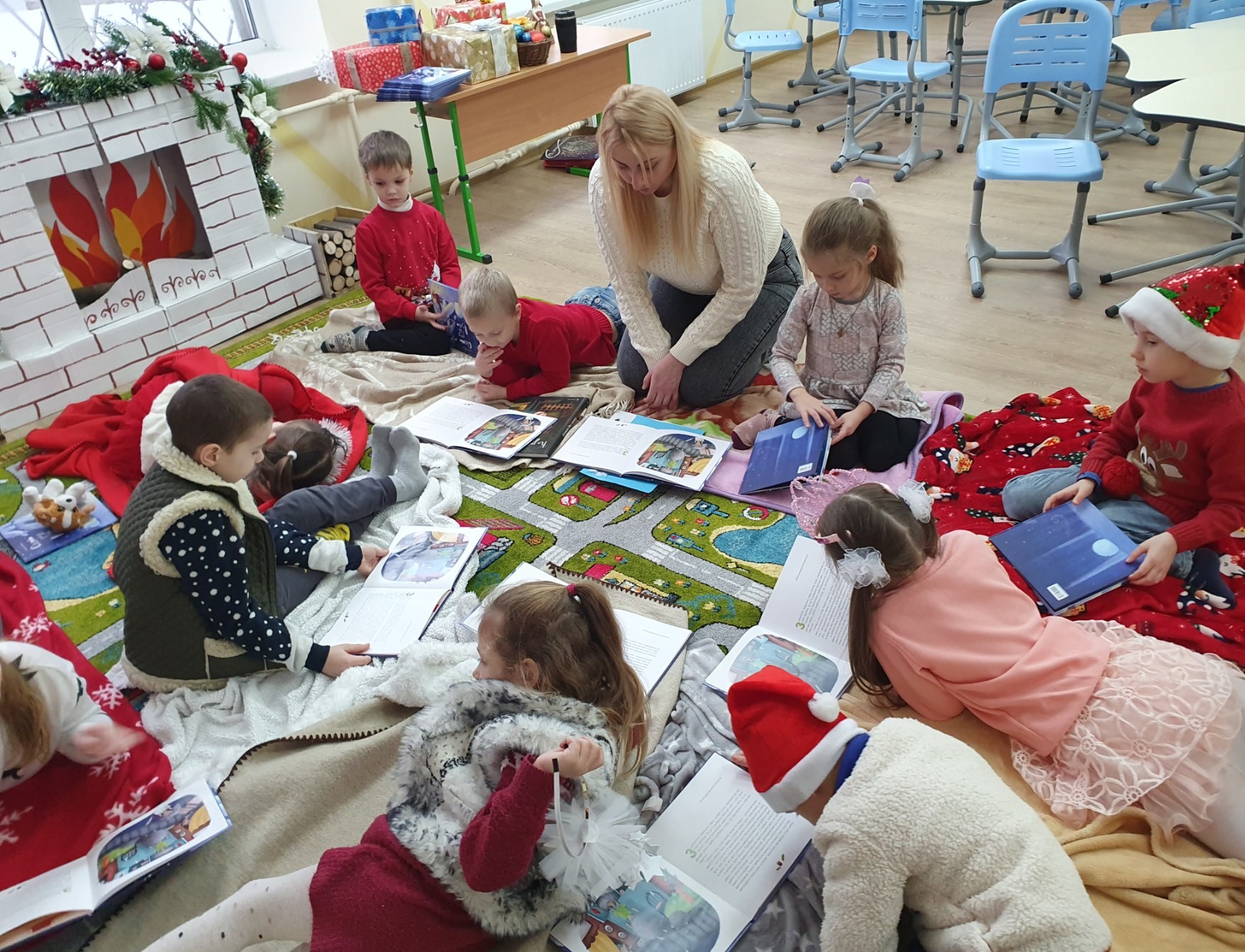 Маленькі вихованці слухали казку про родину їжаків «Одного разу на Різдво». Затишна атмосфера сприяла легкому обговоренню дітьми змісту прослуханого. Вони описували ілюстрації в книзі, відповідали на запитання до тексту, характеризували героїв казки.