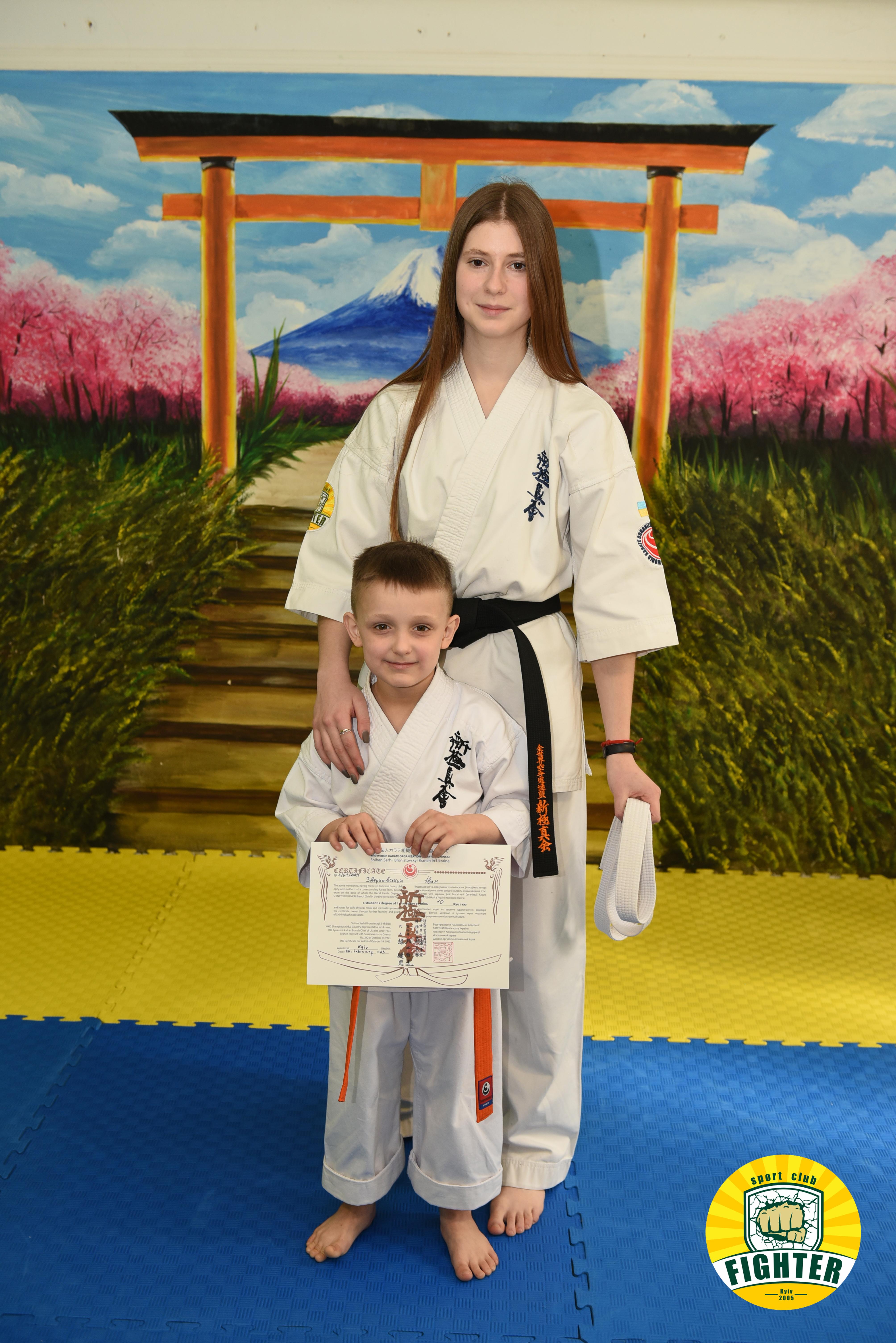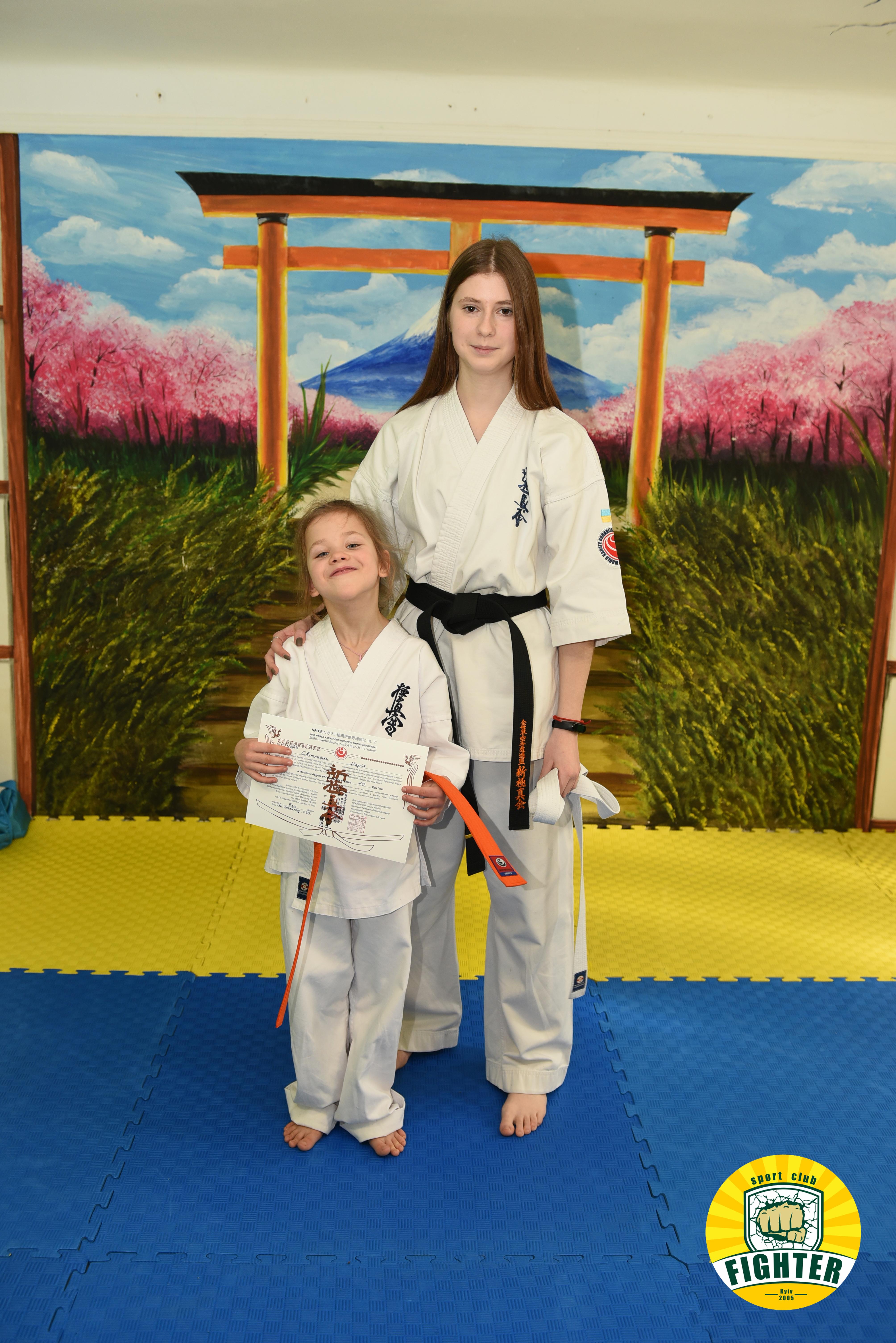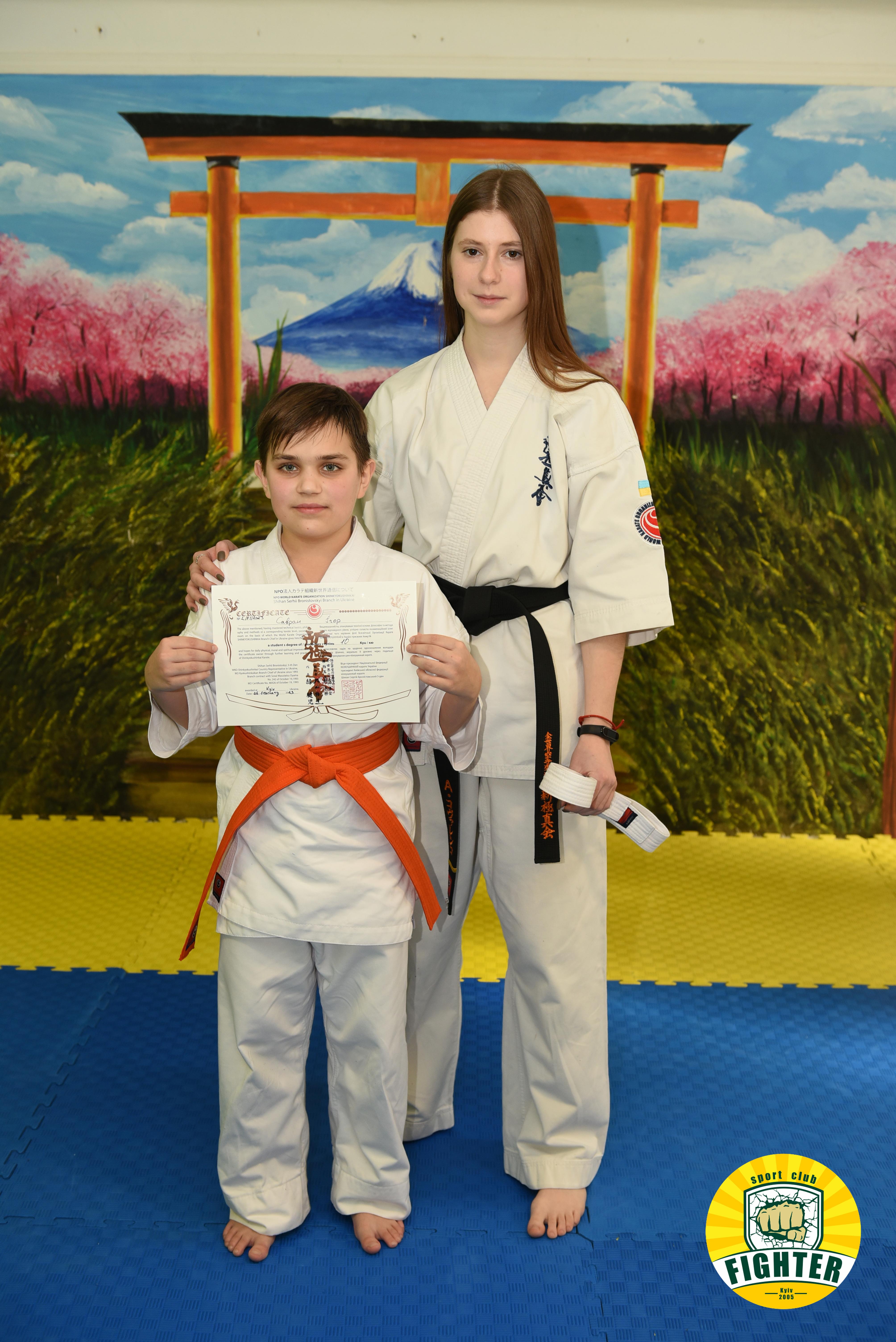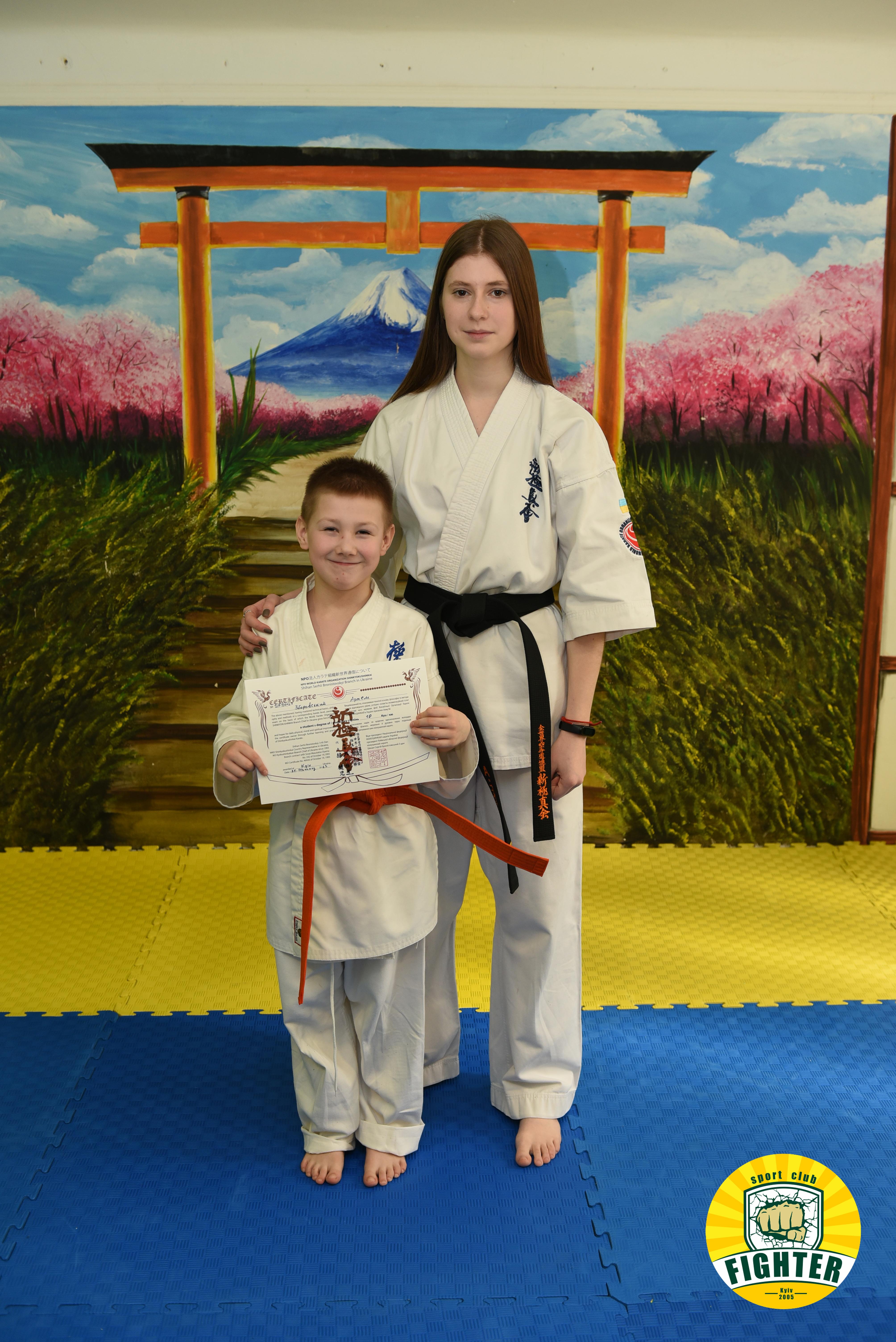 Всі діти успішно склали екзамен та отримали новий ступінь - 10кю (помаранчевий пояс).