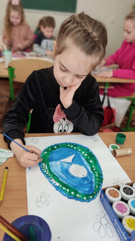 На гуртку образотворчого мистецтва «Магічні візерунки» вихованці вивчали традиції святкування Великодня. Діти познайомилися із символікою візерунків та кольорів писанок, створювали традиційні і сучасні писанки, працювали над творчими роботами до Великодня. Гуртківці долучилися до виставки робіт в НВК до Великодня.