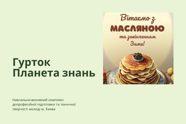 У гуртку «Планета знань» пройшло тематичне заняття на тему: «Знайомство зі Святом Масляної». На занятті вихованці дізналися про традиції цього православного свята, а також удосконалювали вміння читати; розвивали мовлення, пам'ять; виховували інтерес до свят та традицій українського народу.