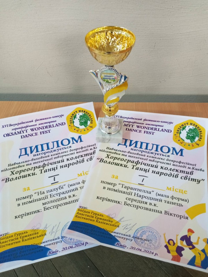 Вихованці гуртка «Хореографічний колектив «Волошки»» прийняли участь у Всеукраїнському фестивалі-конкурсі хореографічного мистецтва у м. Києві та посіли два перших місця.