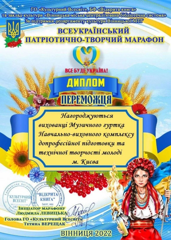 Вітаємо з перемогою вихованців музичного гуртка НВК, які взяли участь у Всеукраїнському патріотично-творчому марафоні ВСЕ_БУДЕ_УКРАЇНА!